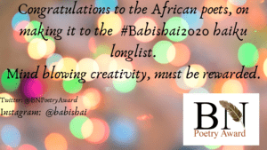 It is with great pleasure that we announce our #Babishai2020 haiku longlist. The Chief Judge, Kariuki wa Nyamu, who also won the 2017 haiku prize, agrees that it was with careful deliberation that the list was made, with such astounding and unparalleled talent. He shall share more, in an extended interview.